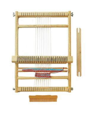 Universal-Webrahmen-Komplettpackung aus Lindenholz, fertig montiert, Größe: 23 x 23 cm, Webmaß: 18 x 18 cm, mit 17 Einschnitten. Inhalt: Webrahmen, 2 Webschiffchen, 1 Nadel und Anleitung. Webrahmen für eckige oder runde Werkeauch zum Knüpfen geeignetfür selbstgewebte Topflappen, Untersetzer, Deckchen uvm.kinderleicht zu erlernen Mit diesem Webrahmen erschaffen Sie oder Ihre Kinder schnell und ganz einfach die schönsten Werke! Dabei ist dieser Webrahmen ein echtes Multitalent: Je nach Art der Bespannung können Sie damit außer rechteckigen auch runde Werkstücke anfertigenund den Rahmen sogar zum Knüpfen verwenden. Weben ist auch schon für Kindergartenkinder zu erlernen: Fasziniert sehen die Kinder ihrem Teppich beim Wachsen zu und bleiben in der Regel begeistert bei der Sache. Das fertig gewebte Teil ist vielfältig zu verwenden, ob als Topfuntersetzer, als Zierdeckchen auf einer Kommode, als Wandteppich uvm. Oder Sie verarbeiten den Teppich weiter, beispielsweise zu einem Kissen. Webe