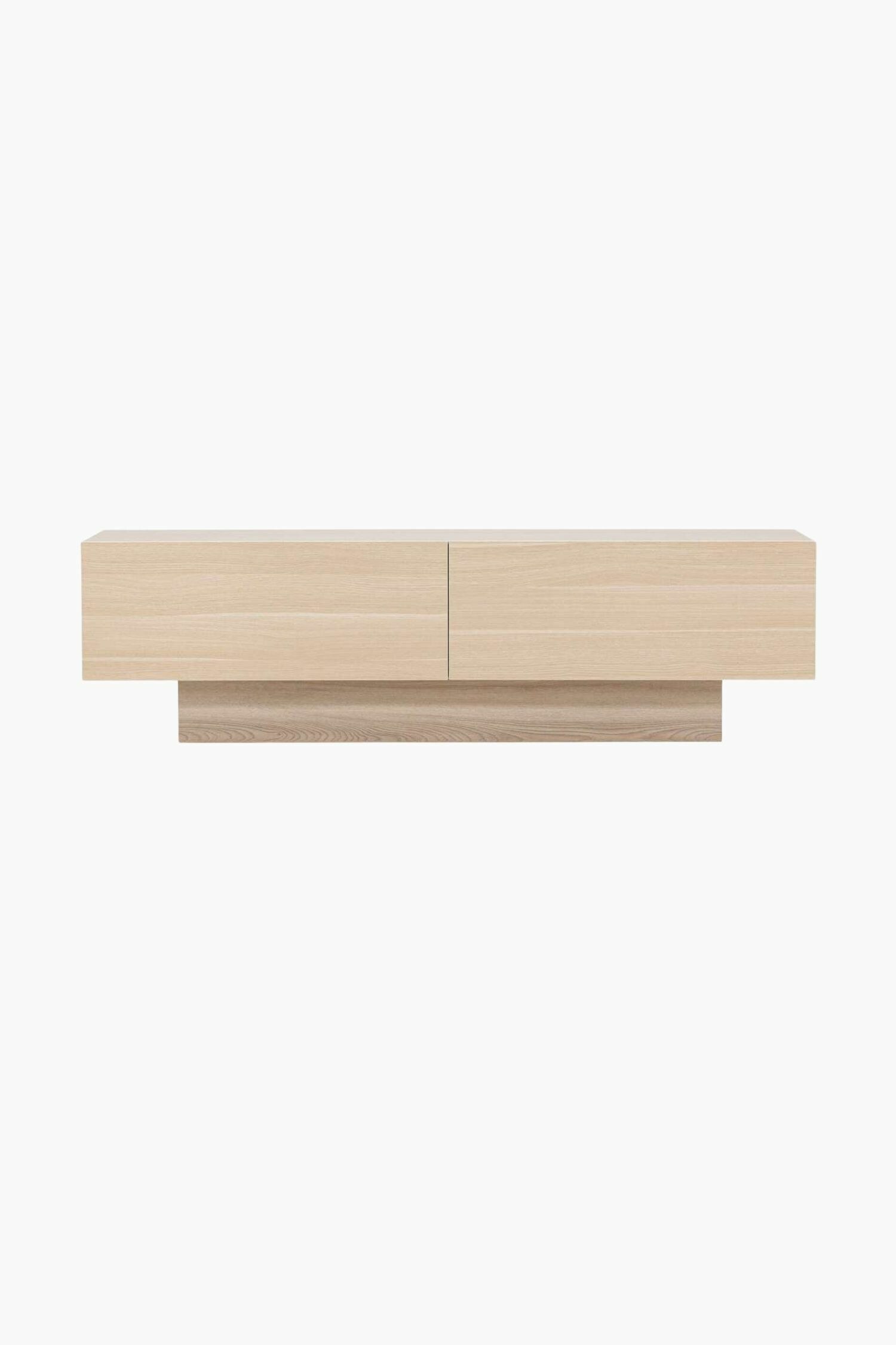 The Silas TV cabinet from WOOOD combines contemporary style with practicality. Constructed from oak melamine, it offers a sleek, modern appearance and is both scratch-resistant and heat-resistant. Melamine, a blend of paper and synthetic resin, provides a durable finish that can be matte or glossy. This TV cabinet measures 60.5 cm in height, 180 cm in width, and 44 cm in depth. It features wide drawers, each 121 cm across and 13 cm high, and cabinet doors that are 37 cm high, 50 cm wide, and 1 cm deep. Each shelf and drawer can support up to 15 kg.