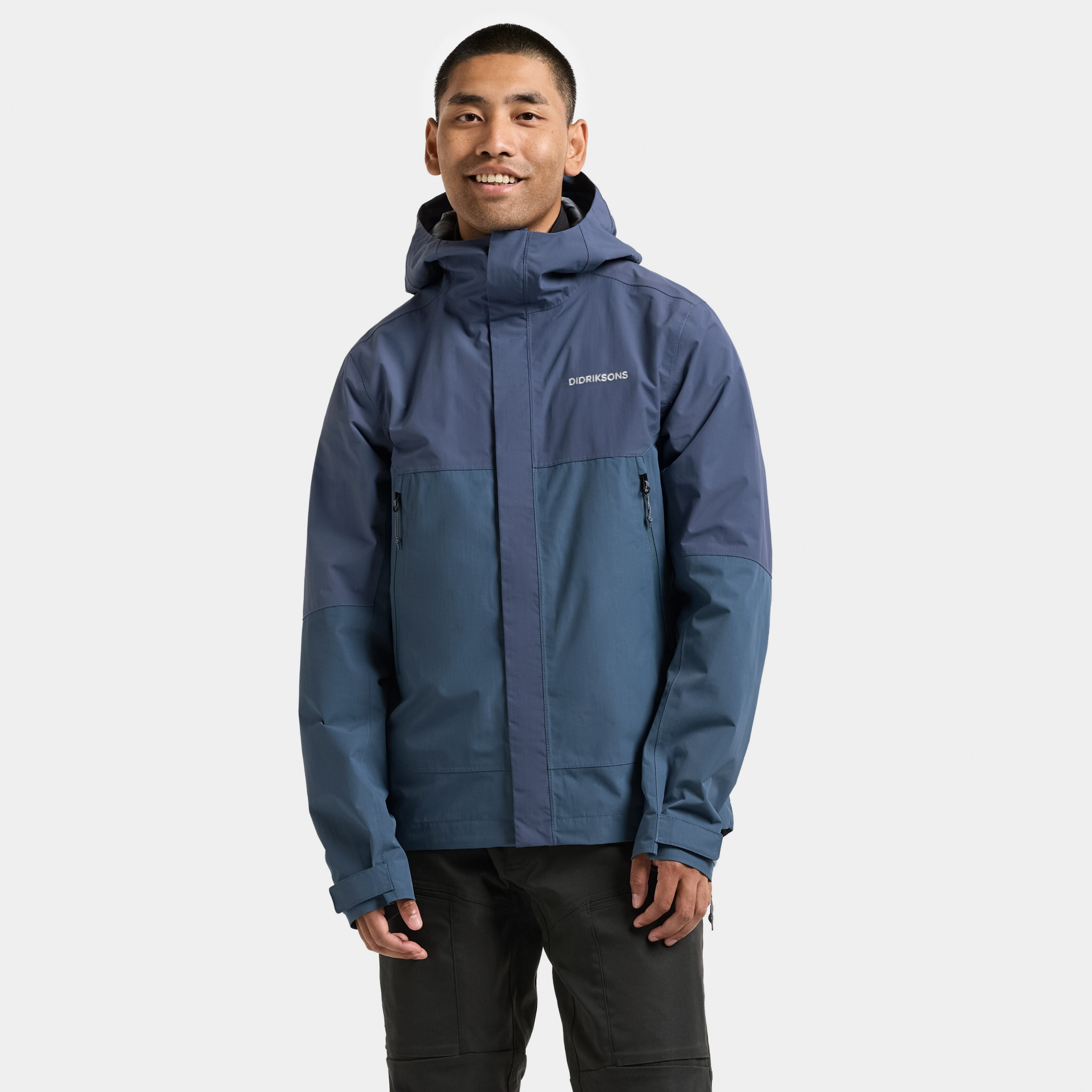 Biak is a weather-protective and functional jacket suitable for both everyday use and outdoor activities. It is water- and windproof with taped seams and made from a breathable material, making it ideal for all weather conditions. The jacket features a two-way front zip and an internal ventilation button for extra comfort. The hood is fixed and can be adjusted in two directions with a drawstring, and it has a shaped brim for additional protection. The jacket is equipped with practical side pockets with zips and an inner pocket with a zip for secure storage. The cuffs can be adjusted with Velcro for a perfect fit. Reflective details, including a reflective logo and reflective zip, increase visibility in the dark. The zip never lies directly against the chin thanks to the collar's design. Water Column: 10,000mmBreathability: 5,000 g/m²/24h Designed in Sweden, produced in Sri Lanka.