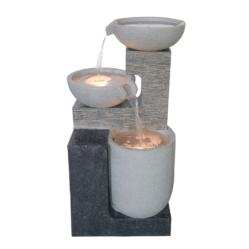 The 2 Fall Cascade water feature is a beautiful multi fall modern design that would be perfect for a patio or small garden. The flowing water from our water feature will give you a delightful peaceful and calming effect. Featuring warm glow LED lights that will illuminate your water feature at night. This water feature is made from a textured hand finished durable resin-stone. Our water feature is self-contained, meaning you will not have to connect to the mains water pipe going to the water feature. You will only have to add the stated amount of water when setting up and add in a small amount of water when it is running low. Remember to drain the water from your water feature during freezing weather, as the water will freeze and damage the pump. Do not forget to buy our Ultimate Fountain Fresh. As this product will keep water clear in the water feature and free from algae, Ultimate Fountain Fresh only takes 48hrs to see clear water results. Quality AssuredThis product