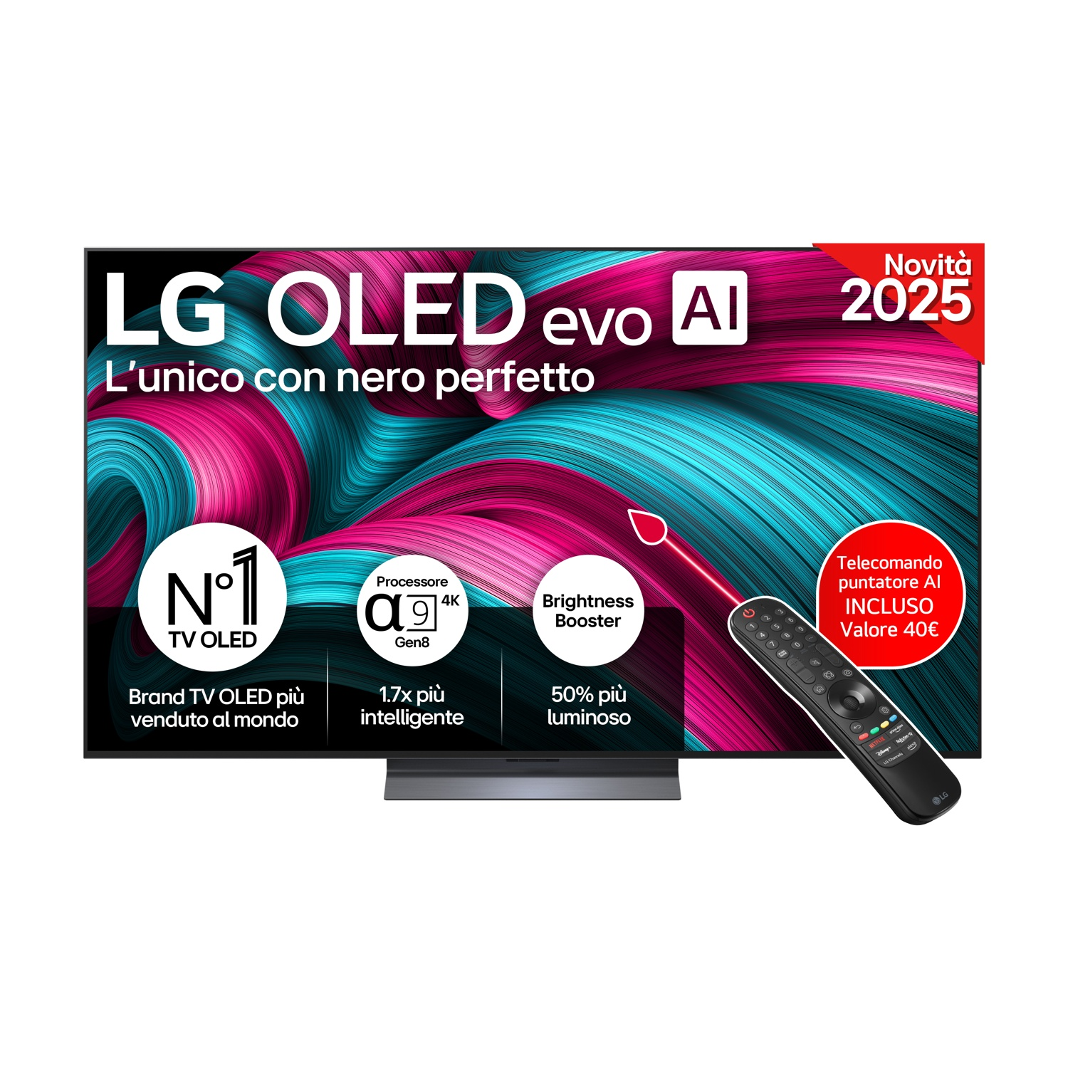 LG Oled AI B5 Nuovo processore a8 Gen2 con AI: Il processore a8 Gen2 sviluppato da LG è progettato per sfruttare il deep-learning dell'Intelligenza Artificiale per riconoscere ciò che stai guardando e migliorare automaticamente il suono e le immagini fotogramma per fotogramma. Ad esempio, analizza ogni fotogramma per migliorare la risoluzione, ridurre il rumore e, sul fronte audio, offrirti un suono surround virtuale fino a 9.1.2 canali. Da 12 anni, il nero perfetto: Avere un TV con il nero perfetto singifica goderti i tuoi contenuti con una profondità maggiore e un contrasto infinito. Da 12 anni LG è leader nei TV Oled, anni in cui ha accumulato un'esperienza capace di darti una qualità delle immagini eccezionale. Grazie ai pixel autoilluminanti e al controllo preciso della luminosità, i contenuti su questo TV Oled godranno di dettagli incredibili indipendentemente dall'illuminazione ambientale. Colori perfetti: 100% Volume Colore 100% Fedeltà Cromatica: Questo TV è stato certificato