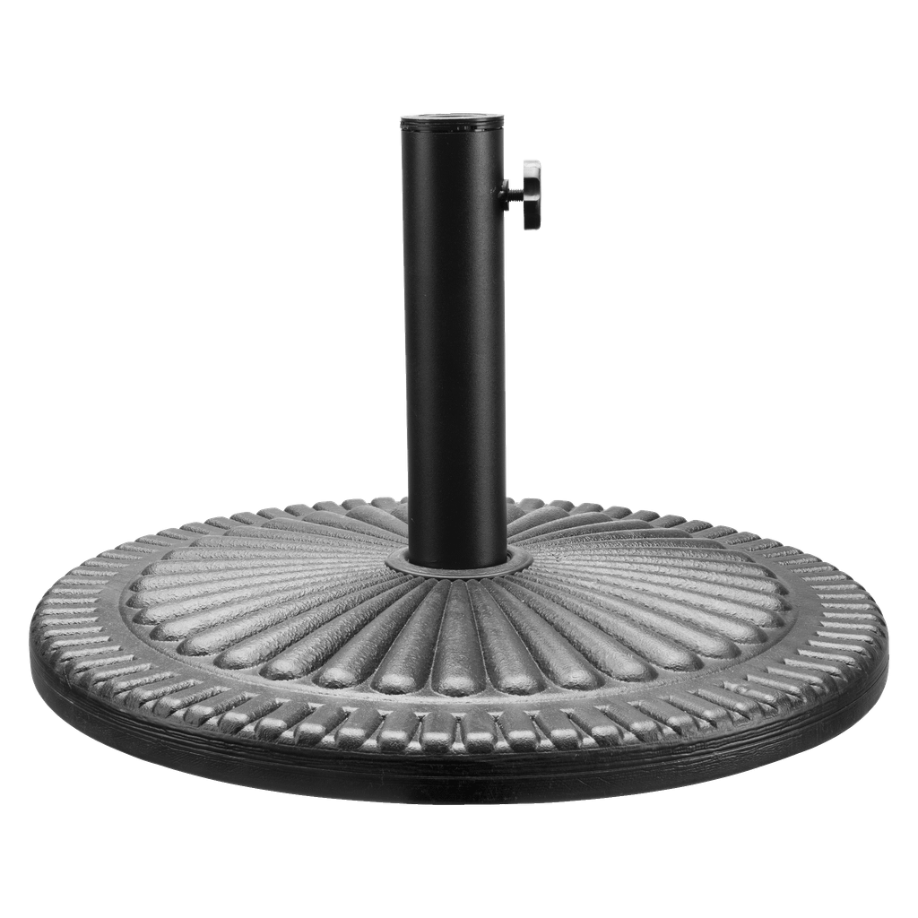 Passer til lettere parasoller (Ø2430 mm stang). Fylles med vann eller sand for stabilitet. Laget av plast og utstyrt med bærehåndtak.