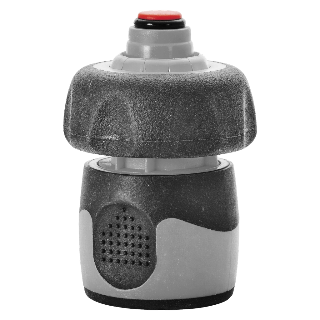 För anslutning mellan vattenkran och 1/2" snabbkoppling. Robust aluminiumkonstruktion med invändig gänga.