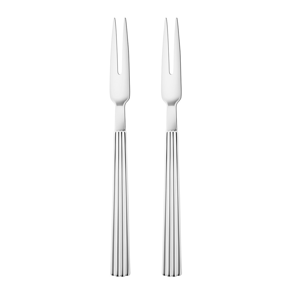 Bernadotte Serveringsgaffel 2-pack från Georg Jensen, designade av Sigvard Bernadotte. Ett klassiska set med serveringsgafflar utformade med de ikoniska ränderna. Bernadotte är en av Georg Jensens mest framgångsrika kollektioner. Den första kollektionen skapades 1938 av Sigvard Bernadotte och hans lika vackra som funktionella produkter har blivit älskade designklassiker.