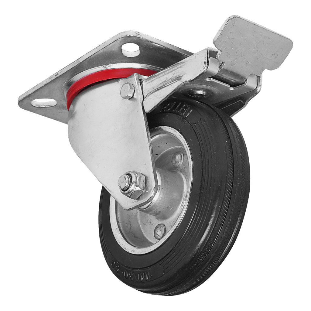 Luftgummihjul med stålfälg och maxbelastning på 120 kg.
