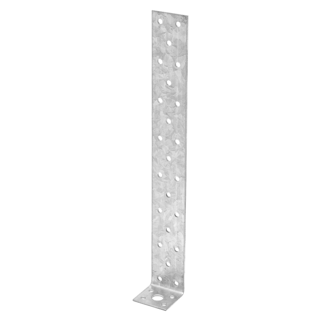 Ytbehandlad stolpsko av U-typ. Avsedd för in-/fastgjutning. Bottenpinne: 200 mm lång.