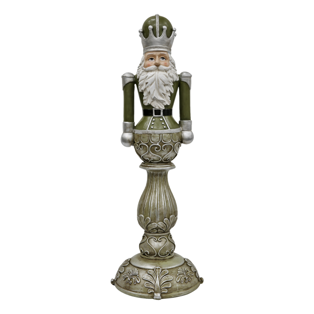 Glad tomte med burrigt skägg och stor mössa. Tomten är tillverkad av polyresin och finns i två varianter.