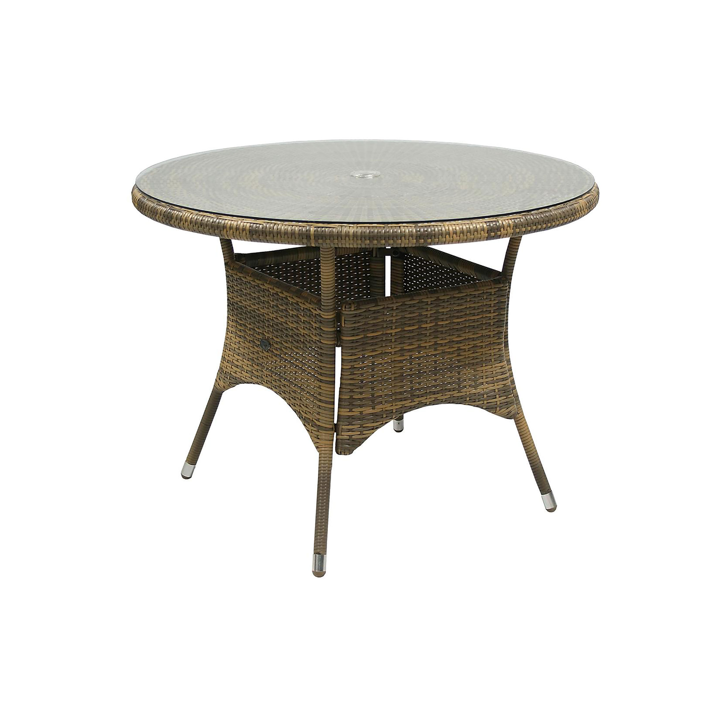 Midas från Comfort Garden är ett modernt matbord av konstrotting med glasskiva och stilren design.