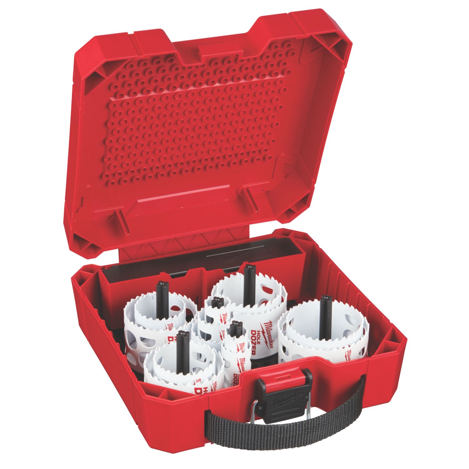 Power-change holesaw and adaptor for a fast and safe attachment and release of the pilot drill bit and holesaw, with just one click. Progressive tooth strip provides optimal cutting performance and fast chip clearance. HSS bi-metal with 8% cobalt alloy, enlarged HSS stripe and redesigned teeth ensures extreme durability. Cuts Wood, Drywall, Plastics, Metal, Non-Ferrous Metal & Stainless Steel PowerChange Plus Arbor Steel Slotted Barrel to Aid Removal of Debris For Use with 3-Jaw Chuck Machines on Rotary Action Progressive Tooth Strip Cuts Wood, Drywall, Plastics, Metal, Non-Ferrous Metal & Stainless Steel PowerChange Plus Arbor Steel Slotted Barrel to Aid Removal of Debris For Use with 3-Jaw Chuck Machines on Rotary Action Progressive Tooth Strip