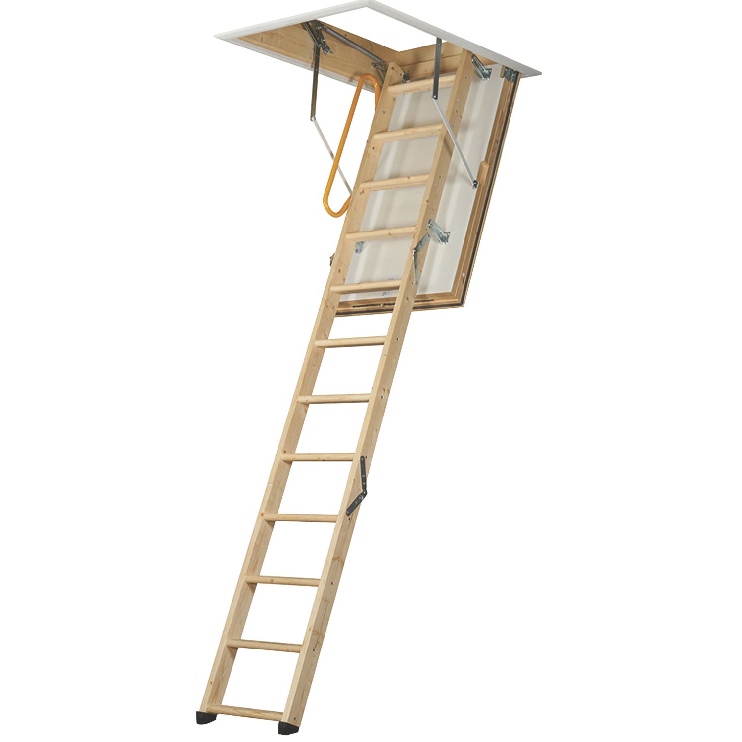 Ideal loft-access solution, extending from 2 overlapping sections that can be fixed to the inside of the loft to be lowered down when access is needed. Min-Max. Floor to Ceiling Height: 2.13-2.69m Max. Static Vertical Load: 150kg Non-Slip Rungs D-Shaped Rungs Handrail Not Included 1 Year Guarantee Min-Max. Floor to Ceiling Height: 2.13-2.69m Max. Static Vertical Load: 150kg Non-Slip Rungs D-Shaped Rungs Handrail Not Included 1 Year Guarantee