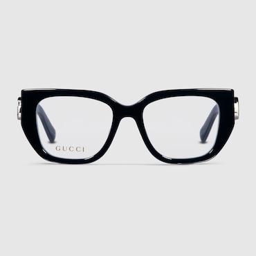 A bold black injection structure defines these rectangular-frame sunglasses, resulting in a modern final design. A cut-out Interlocking G logo enriches the temples. , Shiny black injection frame, Shiny black injection temples with cut-out Interlocking G, Solid grey lens, 100% UVA/UVB protection, GG1325S, Temple length: 140mm, Lens height: 35.3mm, Nose bridge length: 19mm, Frame height: 4.3cm, Frame Width: 14.8cm, Made in Japan, The glasses will arrive in a velvet case, available in a range of six jewel-toned colours and paired with a coordinating satin lining. The case colour will be individually selected for each pair of glasses and comes with a matching satin flannel pouch and ivory microfibre cloth.