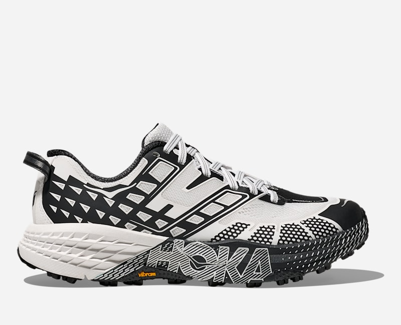 Réunis par la simple joie du mouvement, nous avons uni nos forces à UNNA pour revisiter lun de nos modèles de trail emblématiques. Réputée pour sa désinvolture ludique, la marque de running suédoise sest inspirée de sa devise « smiles-over-miles » (des sourires plutôt que des kilomètres) pour retravailler la Speedgoat 2. Fidèle aux solides racines trail et à la géométrie emblématique du modèle original, cette réédition rétro a été repensée pour la ville avec un laçage rapide sportif, une palette monochrome discrète et le style emblématique dUNNA grâce au clip chenille décalé. | HOKA Speedgoat 2 UNNA Chaussures en Sea Ice/Cosmic Grey Taille 48 | Trail