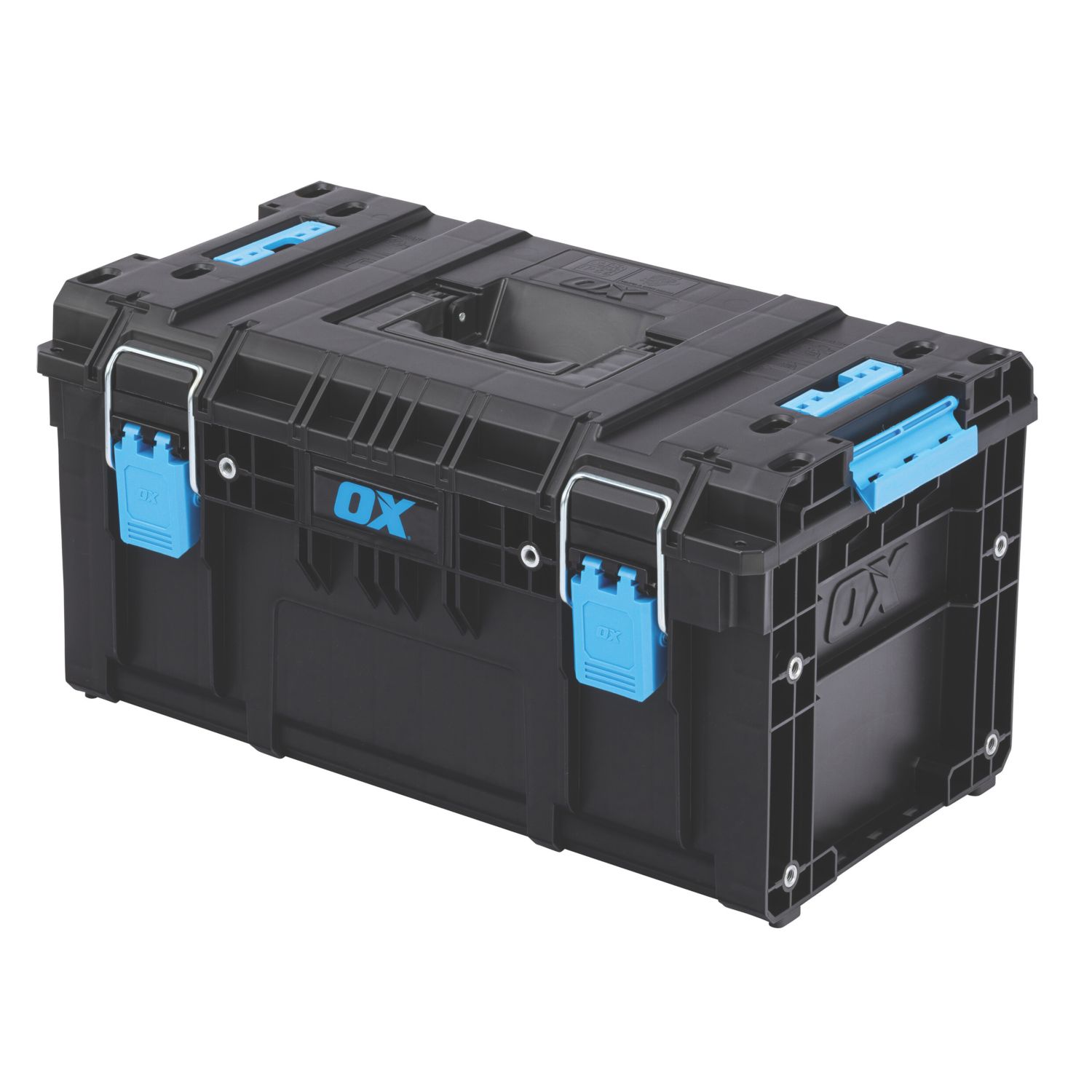 Weatherproof tool chest with integrated V-groove on hinged top lid with lockable plastic clamps. Features one large compartment with internal tote tray and 2 seperators. Complete with carrying handles. Plastic Construction Hinged Lid With Lockable Plastic Clamps 1 Large Compartment with Tote Tray & 2 x Separators Non-Stacking Weatherproof Carrying Handles Plastic Construction Hinged Lid With Lockable Plastic Clamps 1 Large Compartment with Tote Tray & 2 x Separators Non-Stacking Weatherproof Carrying Handles