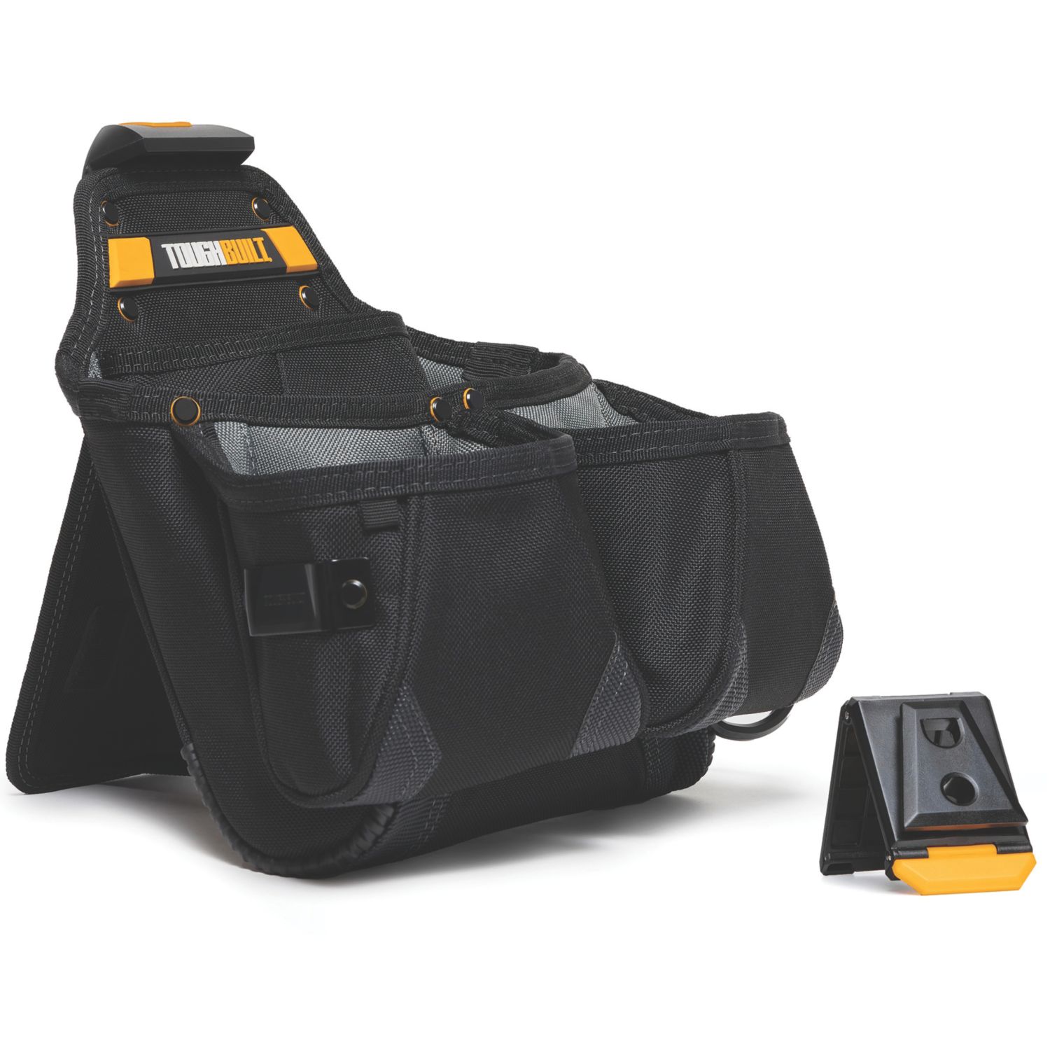 3-piece builders belt set with rugged 6-layer construction. Features various pockets and loops for storing tools, with modular hammer loop, and tape measure clip. ClipTech technology allows interchangeable pouches to easily clip on and off the belt. 12 Pockets & 11 Loops Fits 32-48" Waist Polyester Construction Double-Pin Buckle Fastening Modular Hammer Loop Tape Measure Clip 12 Pockets & 11 Loops Fits 32-48" Waist Polyester Construction Double-Pin Buckle Fastening Modular Hammer Loop Tape Measure Clip