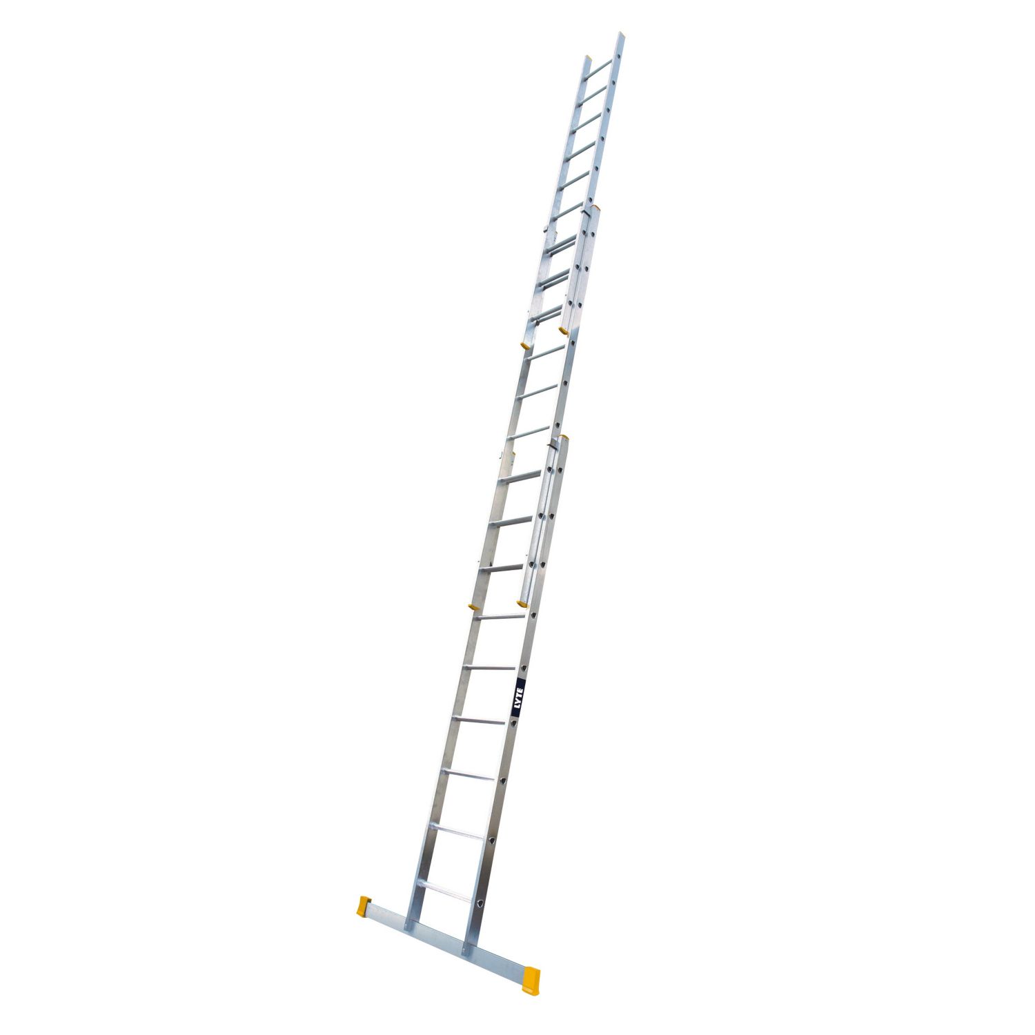 Triple section extension ladder constructed using high-grade aluminium and suitable for professional use. Box section stiles provide additional rigidity. Features include wrap-around top clips with smooth-glide runners, slip-resistant square-shaped rungs and a wide stabiliser. Closed to Max. Open Height: 3.58 - 8.61m Max. Static Vertical Load: 150kg 1.2m Removable Stabiliser Bar Supplied 10 Year Manufacturer's Guarantee (T&Cs Apply) Closed to Max. Open Height: 3.58 - 8.61m Max. Static Vertical Load: 150kg 1.2m Removable Stabiliser Bar Supplied 10 Year Manufacturer's Guarantee (T&Cs Apply)